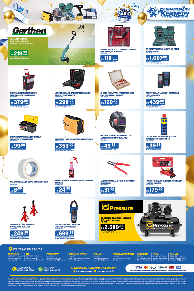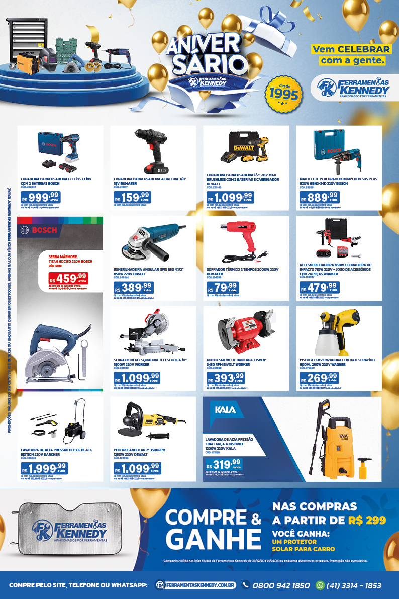 Aniversário Ferramentas Kennedy é o momento perfeito para quem busca ferramentas de qualidade, preços especiais e condições exclusivas para começar o ano economizando. Em janeiro, celebramos nossa história com ofertas imperdíveis em diversas categorias para profissionais e consumidores exigentes.